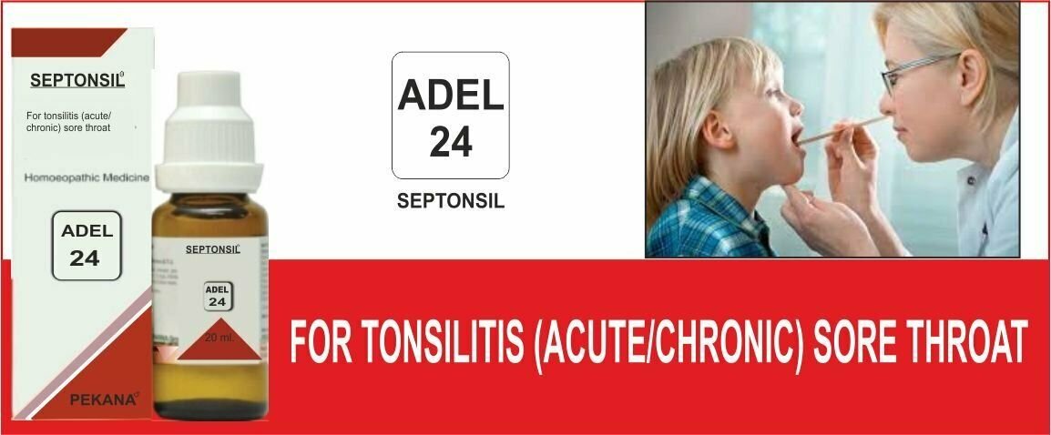 Adel 24 Septonsil Drops, Homeopathy for Sore Throat is an antibacterial remedy to treat the chronic and acute sore throat, throat infections, tonsillitis etc. It also stimulates the production of leukocyte and helps in efficient excretion of the toxic metabolic wastes.