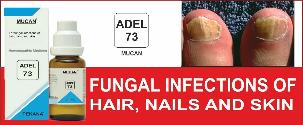 Adel 73 Mucan German Homeopathy Drops for Fungal Infection Treatment of nail, hair and skin. Helps to treat infection caused by yeast-like parasitic fungus (candida), fungal plant pathogen (mucor racemosus), fungus (aspergillus niger). Also indicated for people suffering from systemic or environmental detoxification. It has special antibiotic and antimycotic effect on tissues and blood and helps to change internal terrain.