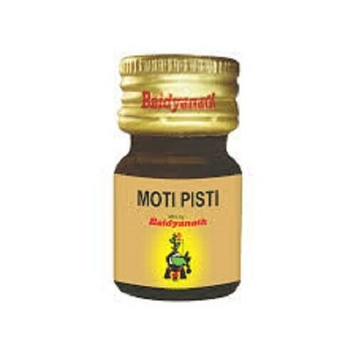 Baidyanath Moti Pishti No.1 is an ayurvedic medicine that is prepared from calcium and used to treat digestive, cardiac and psychological problems. It has antacid, anti-inflammatory, antidepressant and muscle relaxant properties.